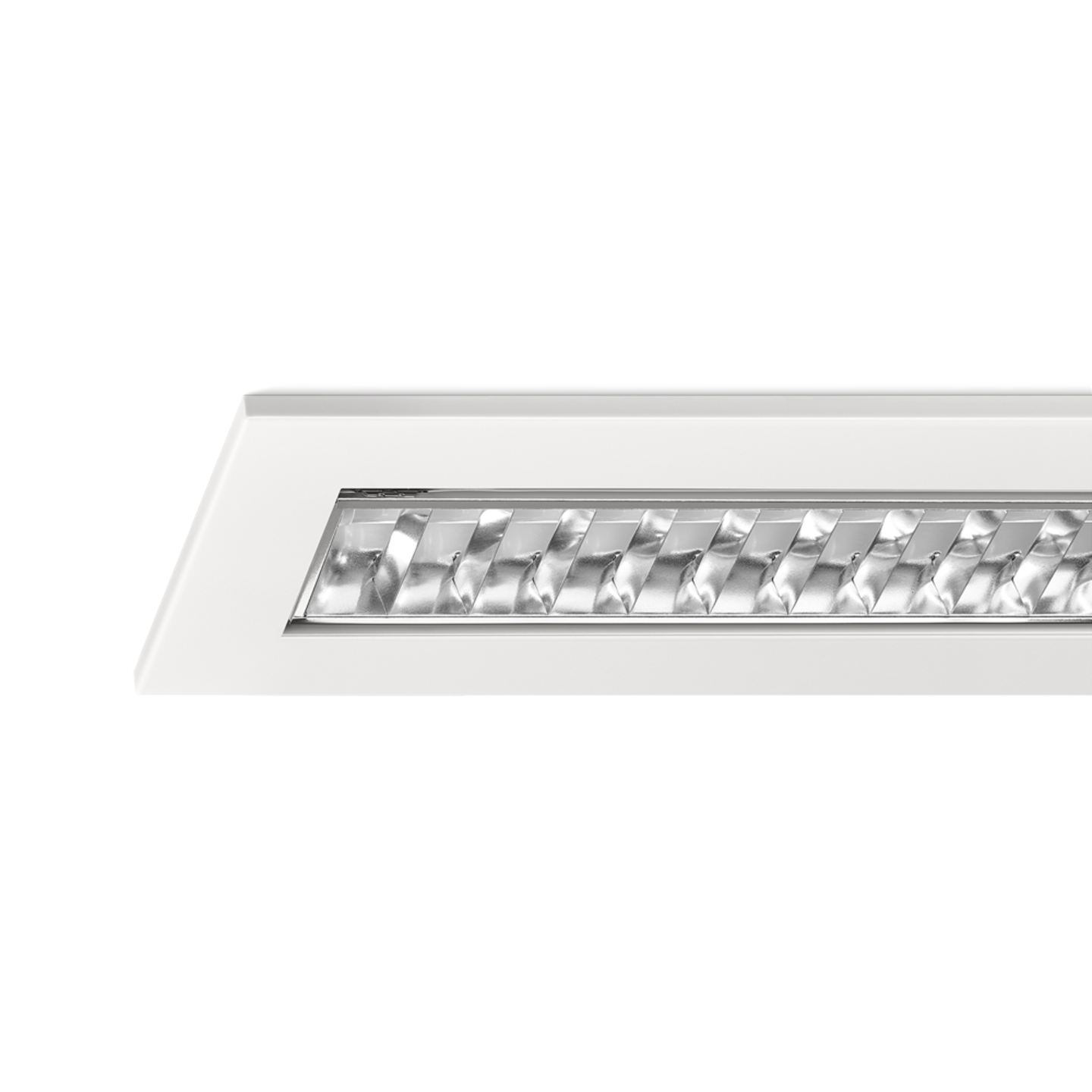 Rasterarmatuur van Norton met matglans rooster en omhuizing van wit gemoffeld plaatstaal inclusief geïntegreerde led.