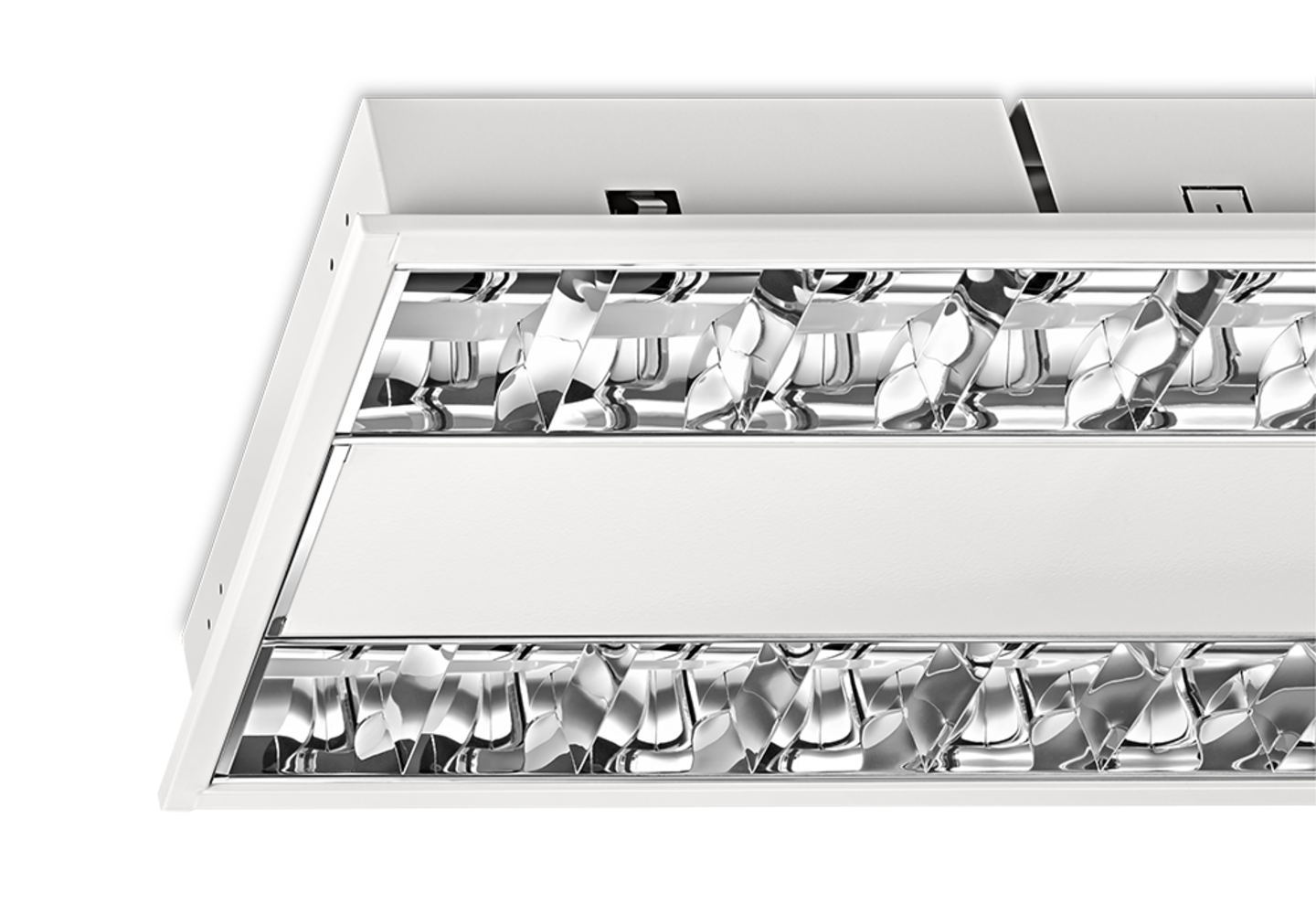 Geschikt voor systeemplafonds, moduul 600, met zichtbare profielen. Voor systeemplafonds met onzichtbare profielen kan een set montagebeugels worden geleverd. Wit gemoffeld plaatstaal. Inclusief geïntegreerde led, standaard in 3000K en 4000K, een PMMA diffuser en Wieland chassisdeel GST 18i3 (bij dimbare uitvoering GST 18i5).